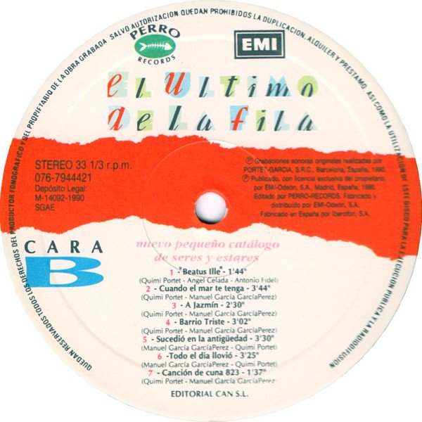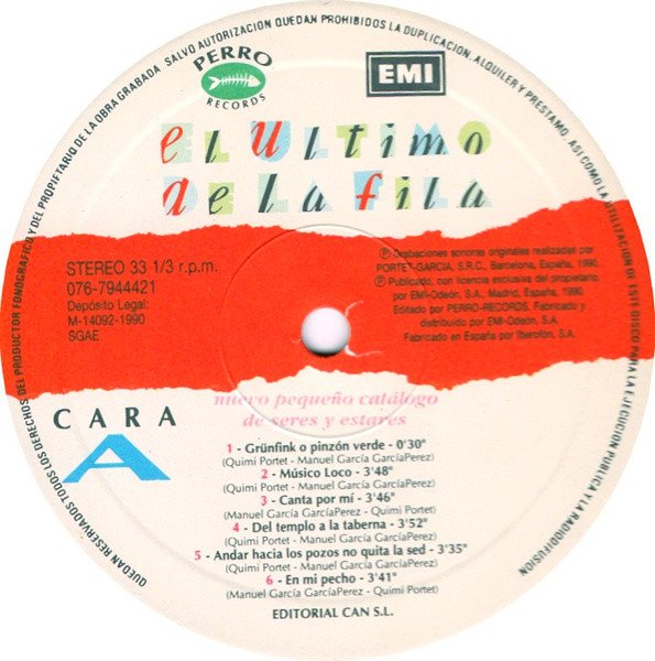 (P) 1991 Perro Records, EMI Odeon S.A. Madrid, Spain.